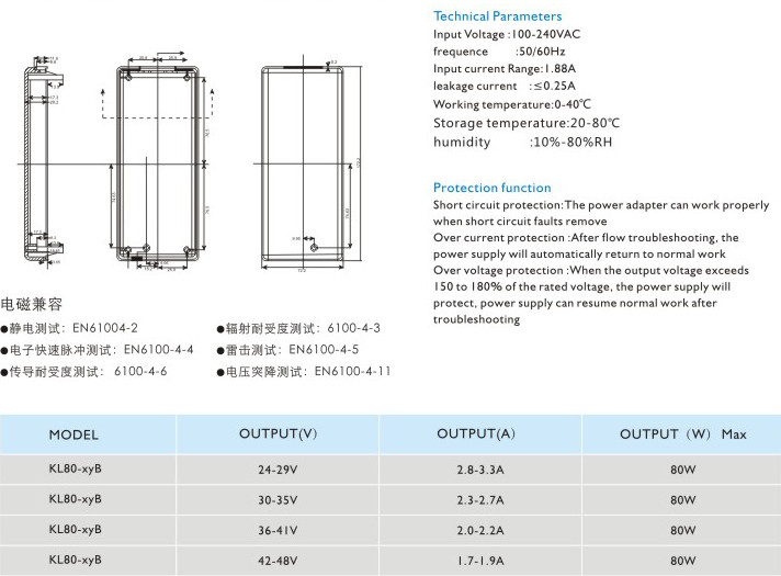 過(guò)流保護(hù):過(guò)流故障排除后,電源將自動(dòng)恢復(fù)正常工作 過(guò)壓保護(hù):當(dāng)輸出電壓超過(guò)額定電壓的150~180%時(shí),電源將保護(hù),故障排除后電源能恢復(fù)正常工作 輸入電壓:100-240VAC 頻率:50/60Hz 輸入電流:1.88A 漏電電流:<0.25A 工作溫度:0-40℃ 貯藏溫度:-20-80℃ 濕度:10%-80%RH" />