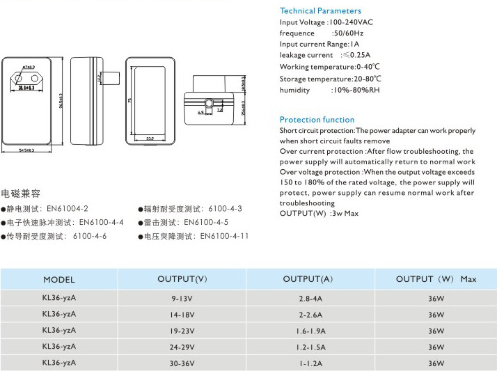 短路保護(hù): 電源適配器在短路解除時能正常工作恢復(fù)