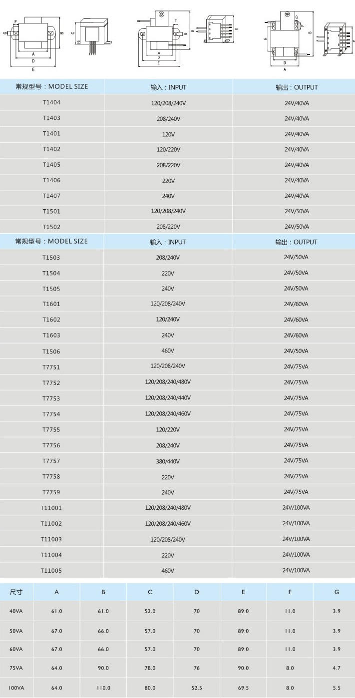 功率:40VA50VA75VA100VA